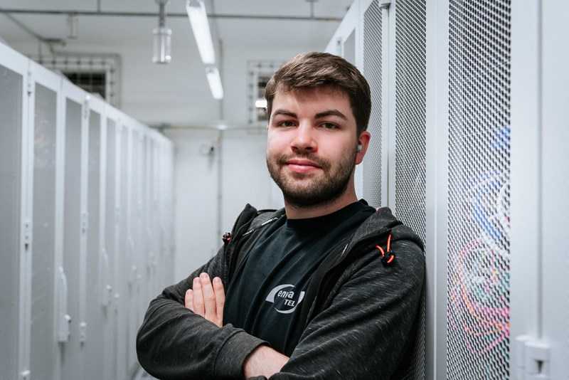 Vor seiner Ausbildung beim Telekommunikationsdienstleister envia TEL schloss Edwin eine Lehre zum Koch ab und arbeitete zwei Jahre in der Gastronomie. Doch in seiner Freizeit tüftelte er schon immer gern an Computern, so dass er sich schließlich entschied, seine Leidenschaft zum Beruf zu machen. Im kommenden Jahr schließt Edwin seine Zweitausbildung ab und möchte danach gern im Datacenter bleiben. Zusätzlich zu seiner praktischen Arbeit besucht er im monatlich wechselnden Blockunterricht die Berufsschule in Halle.